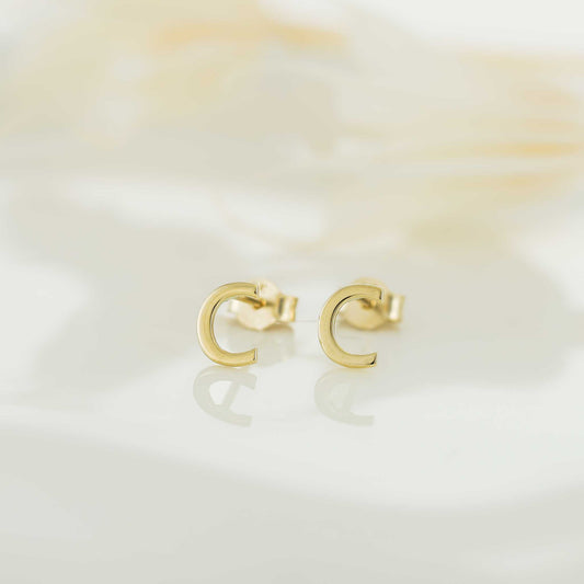 9ct Yellow Gold Initial Stud Earrings - Letter C