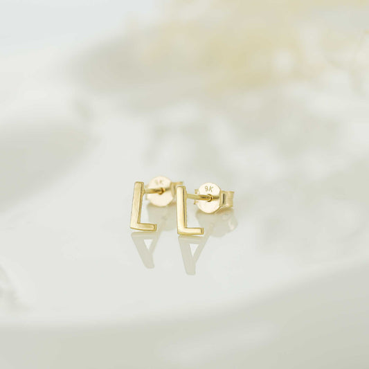 9ct Yellow Gold Initial Stud Earrings - Letter L