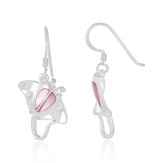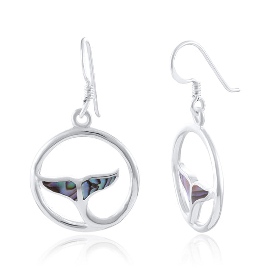 Sterling Silver Abalone Shell Whale Tail Earrings SER4023