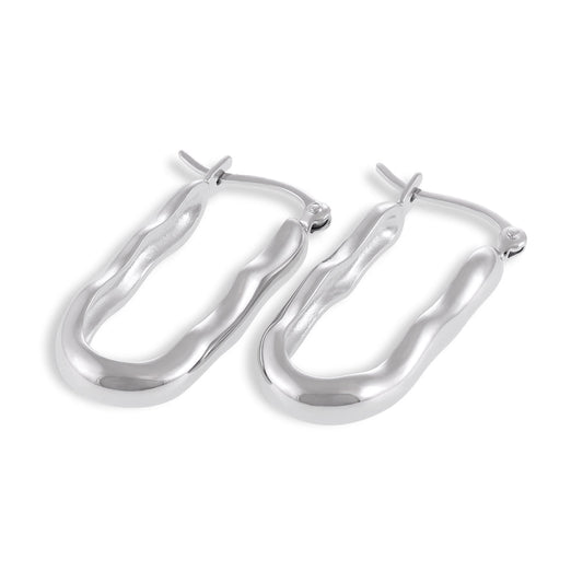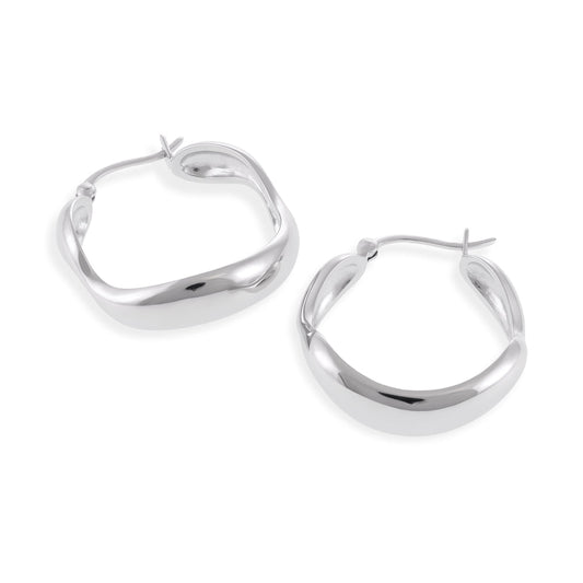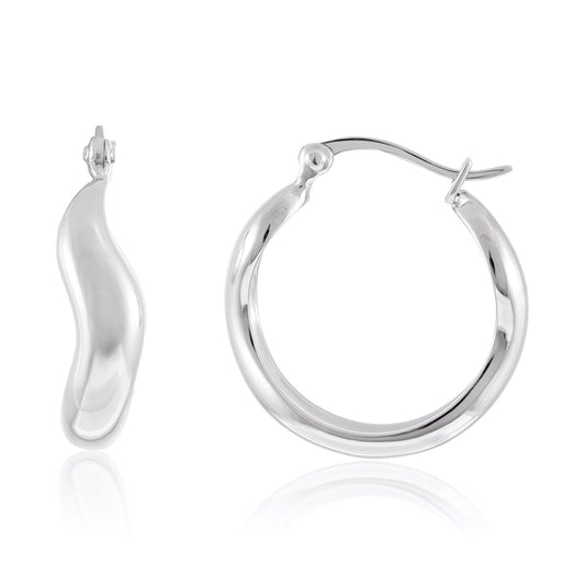 925 Sterling Silver Rhodium Plated Wavy Hoop Earrings SER1001