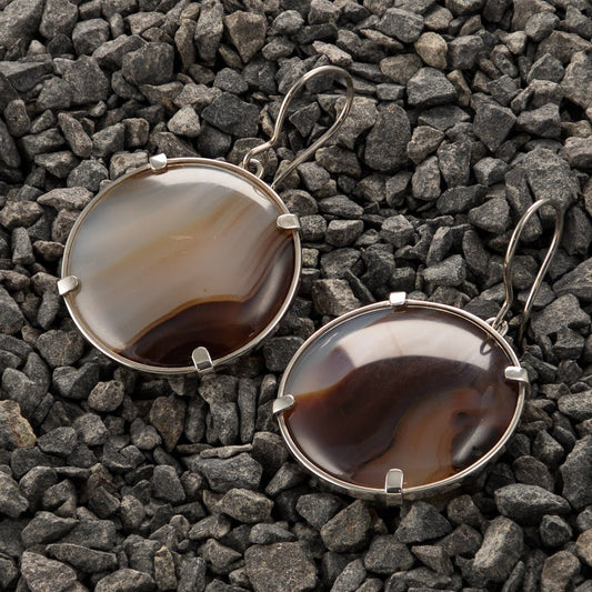 Pre-owned Natural Agate Gemstone 925 Sterling Silver Drop Earrings 5180