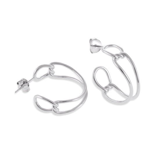 925 Sterling Silver Rhodium Plated Wavy Hoop Earrings SER1002