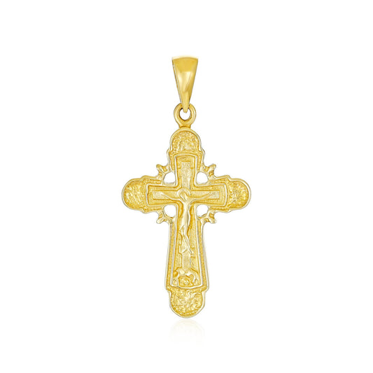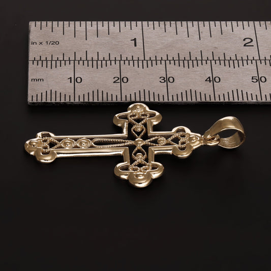 9ct Solid Gold Orthodox Patterned Crucifix Cross Pendant - 35mm PD60076-9Y