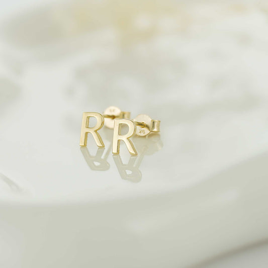 9ct Yellow Gold Initial Stud Earrings - Letter R