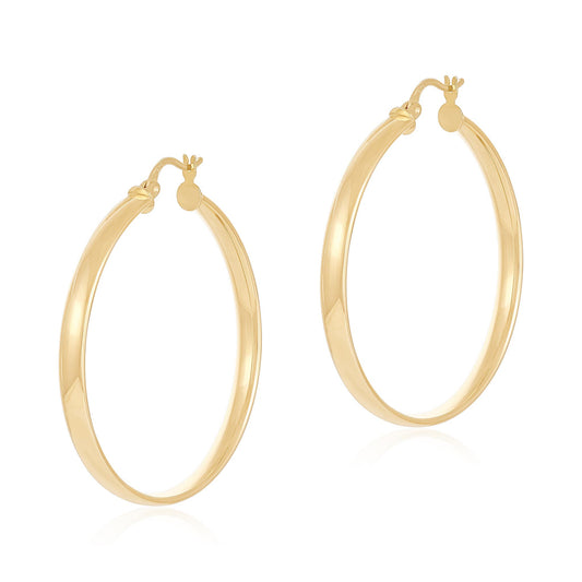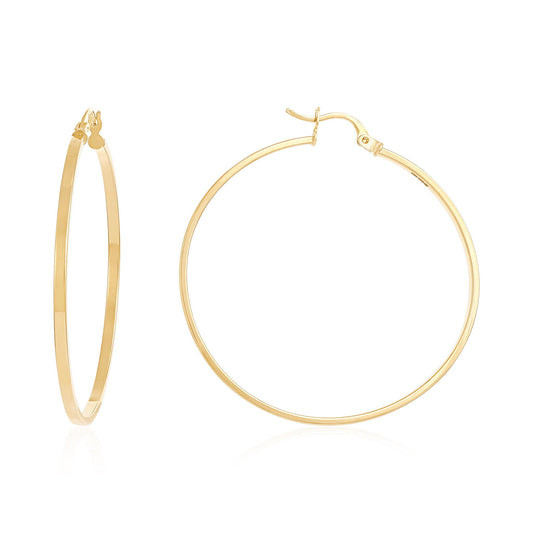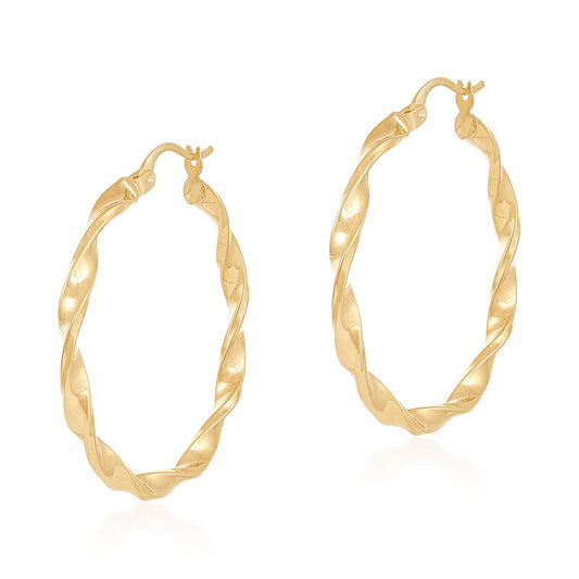9ct Yellow Gold Twisted Detail Hoop Earrings - 34mm