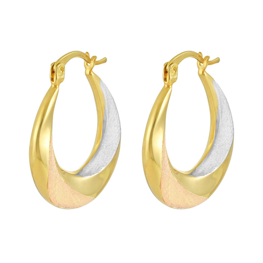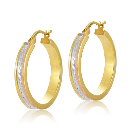 9ct Yellow Gold Tri Colour Hoop Earrings