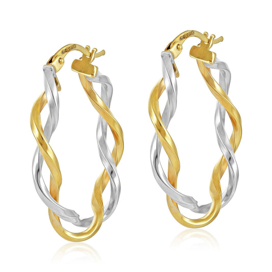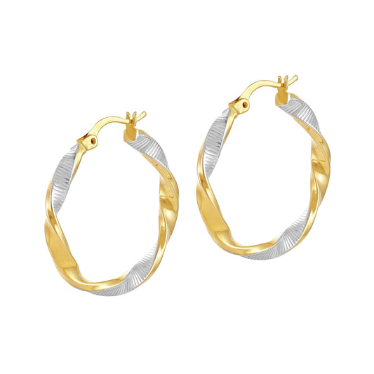9ct Yellow and White Gold Twisted Hoop Earrings