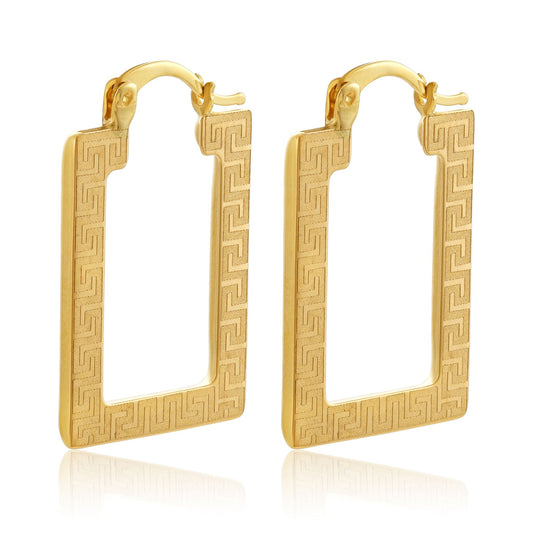 9ct Yellow Gold Greek Key Square Design Earrings