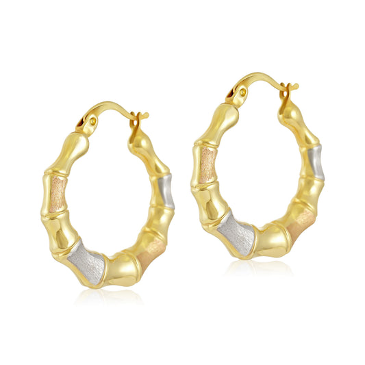 9ct Tri Tone Bamboo Hoop Earrings