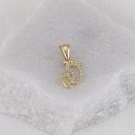 9ct Solid Yellow Gold Cubic Zirconia Baby Feet Pendants PD60-9-54-34