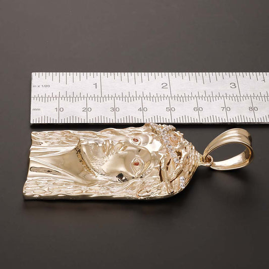 14ct Solid Gold Red Gem-Set Jesus Head Pendant - 48mm PD60008-14Y