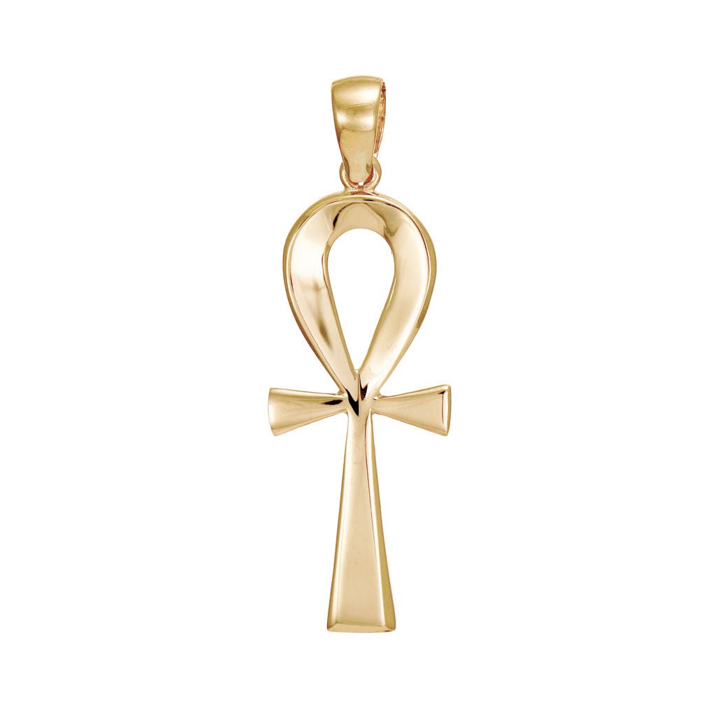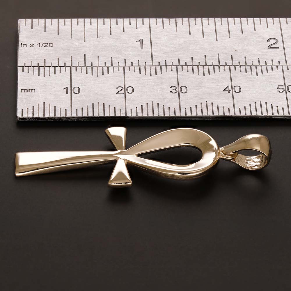 14ct Solid Gold Plain Ankh Cross Pendant - 44mm PD60020-14Y
