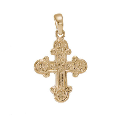 14ct Solid Gold Russian Orthodox Patterned Cross Pendant - 33mm PD60078-14Y
