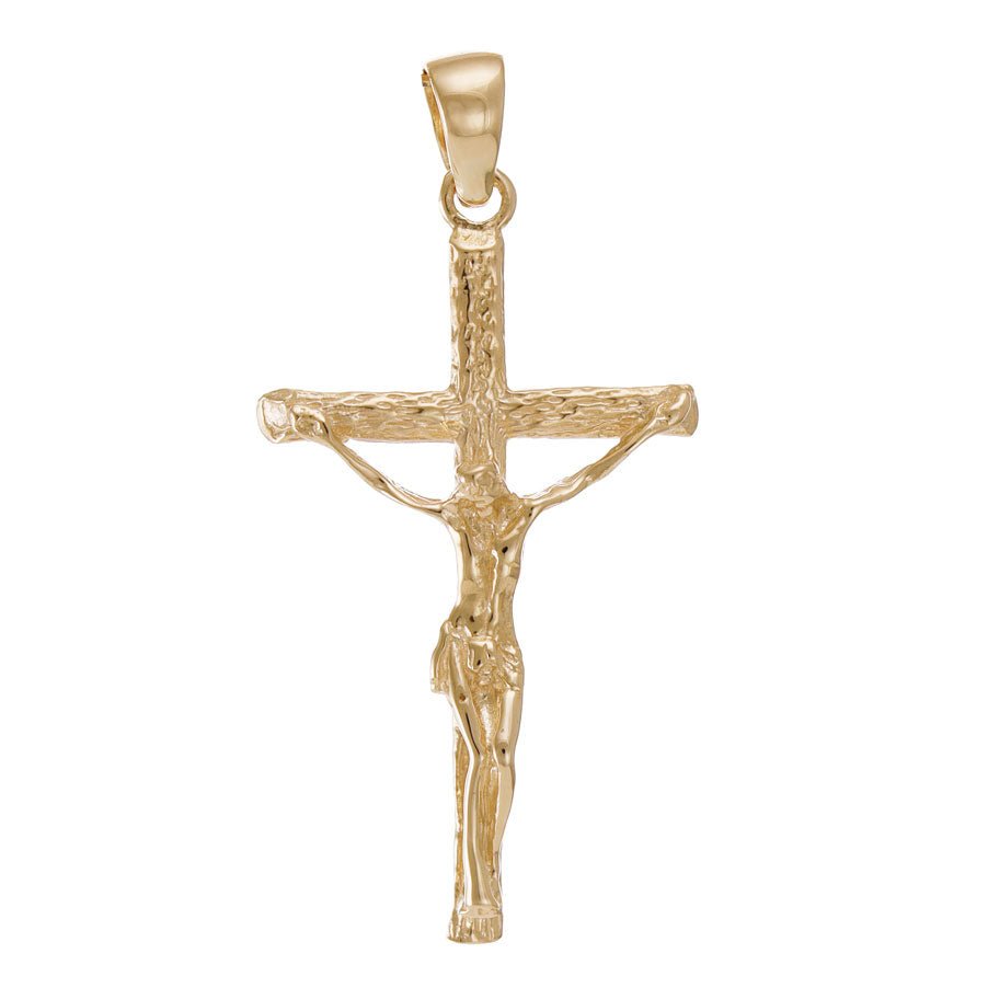 14ct Gold Traditional Barked Crucifix Cross Pendant - 48mm PD60065-14Y