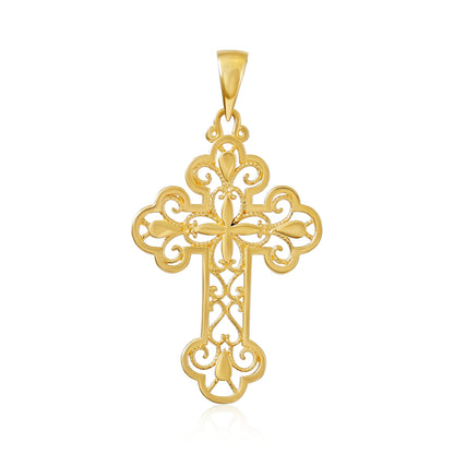 14ct Solid Gold Traditional Patterned Cross Pendant - 33mm PD60081-14Y