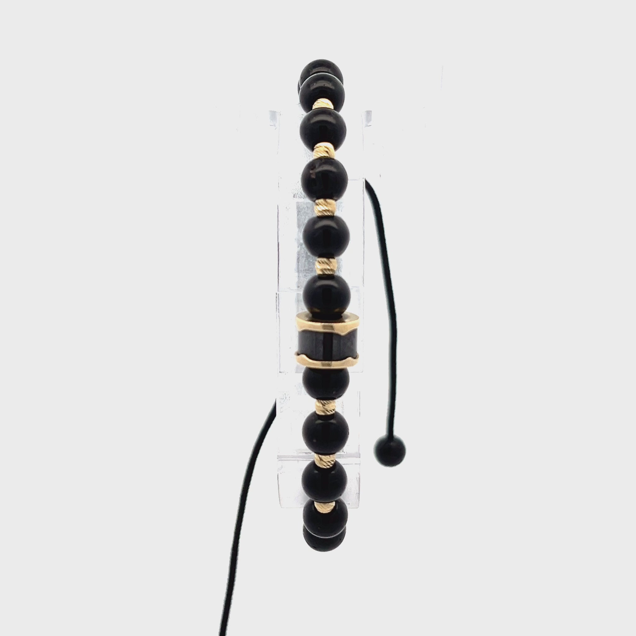 14ct yellow gold pre-owned bracelet with black beads FCA06010741-3