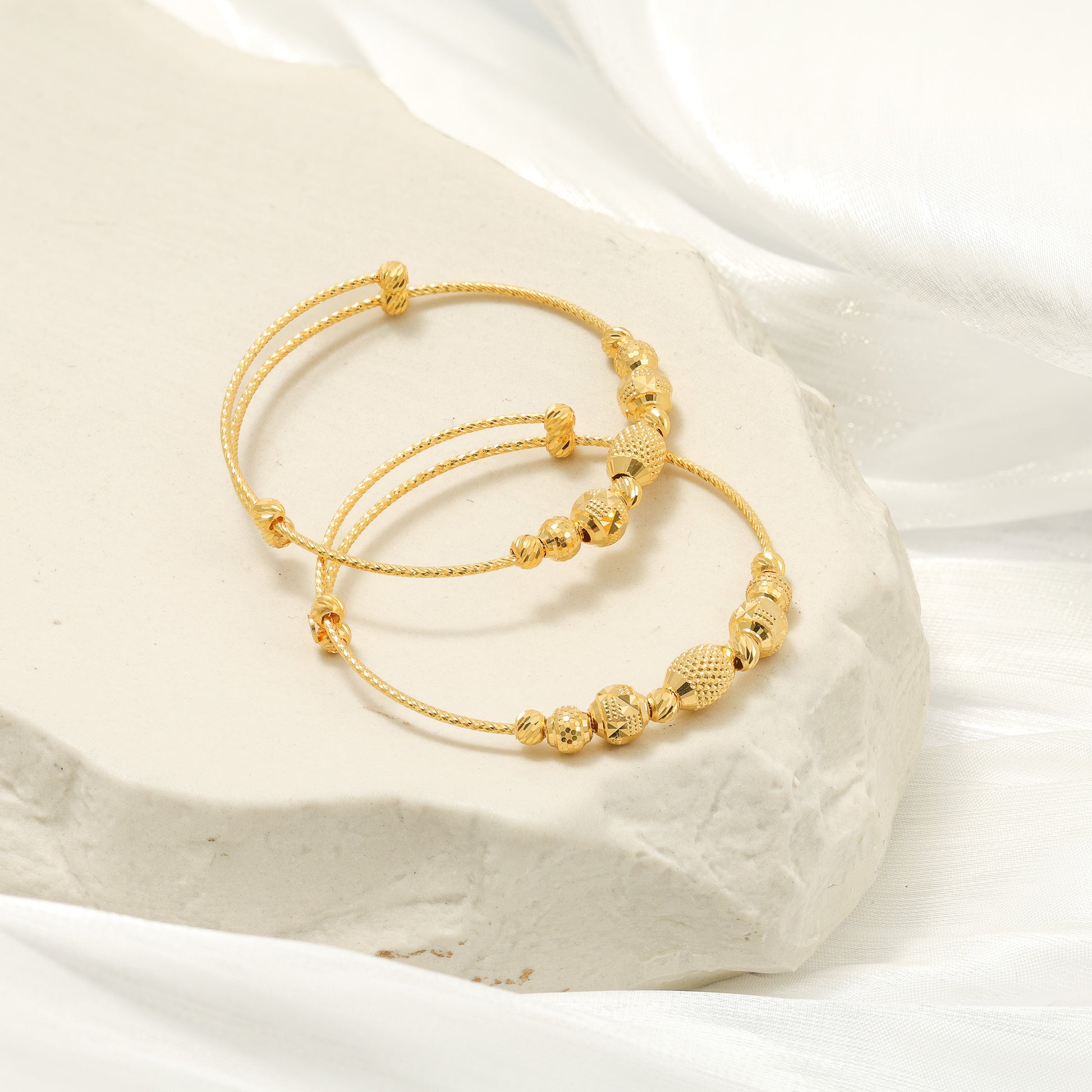 22ct Yellow Gold Bead Detail Baby Bangle Set BF1224-BN4