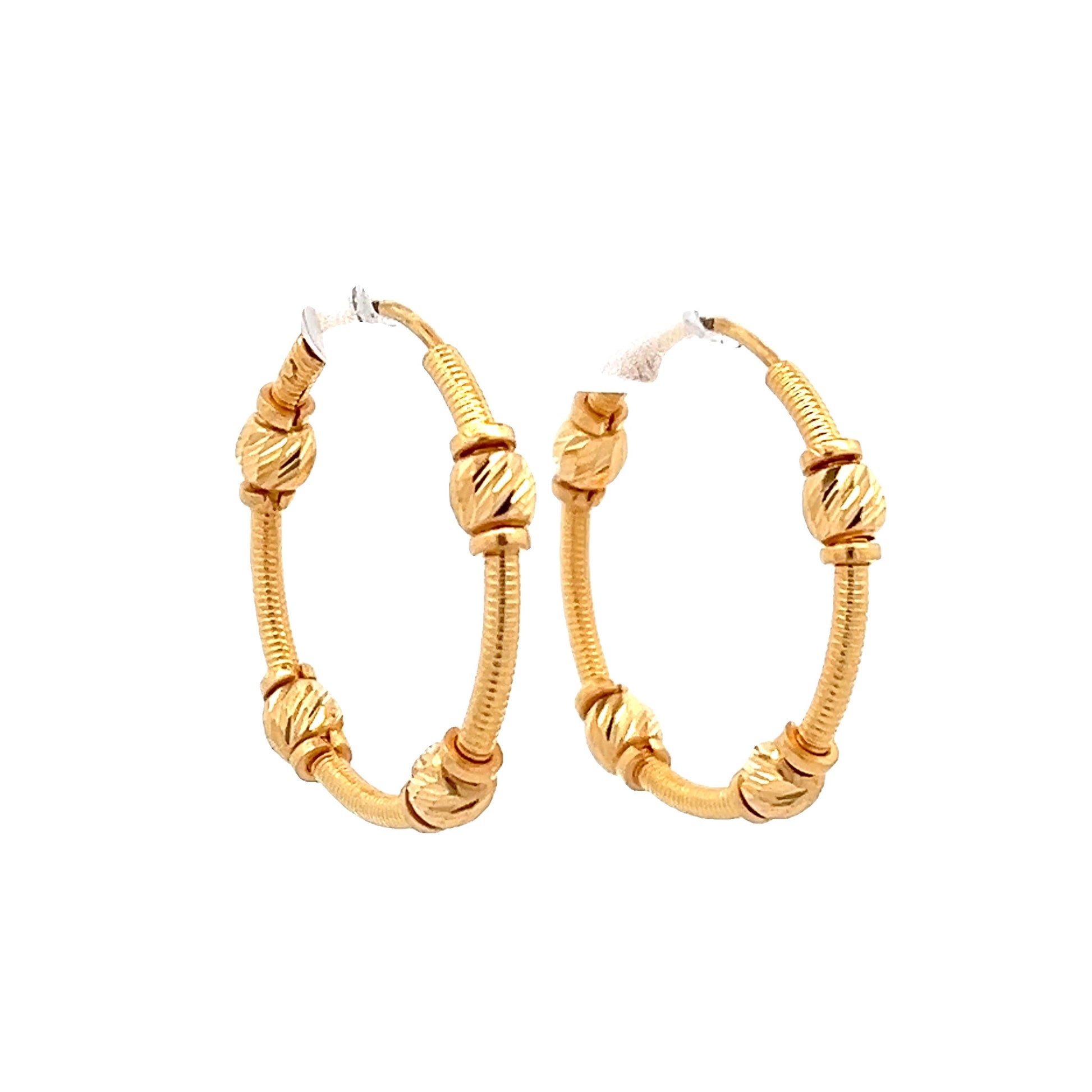 22ct Yellow Gold Bead Hoop Earrings PZ325-ER19