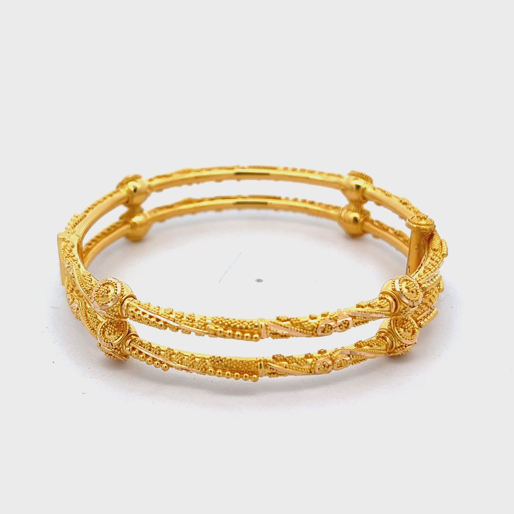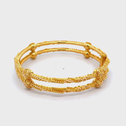 22ct Yellow Gold Double Row Fancy Bangle PZ325-BN63
