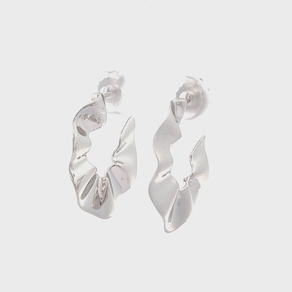 925 Silver Rhodium Plated Irregular Shaped Hoop Earrings SER3005