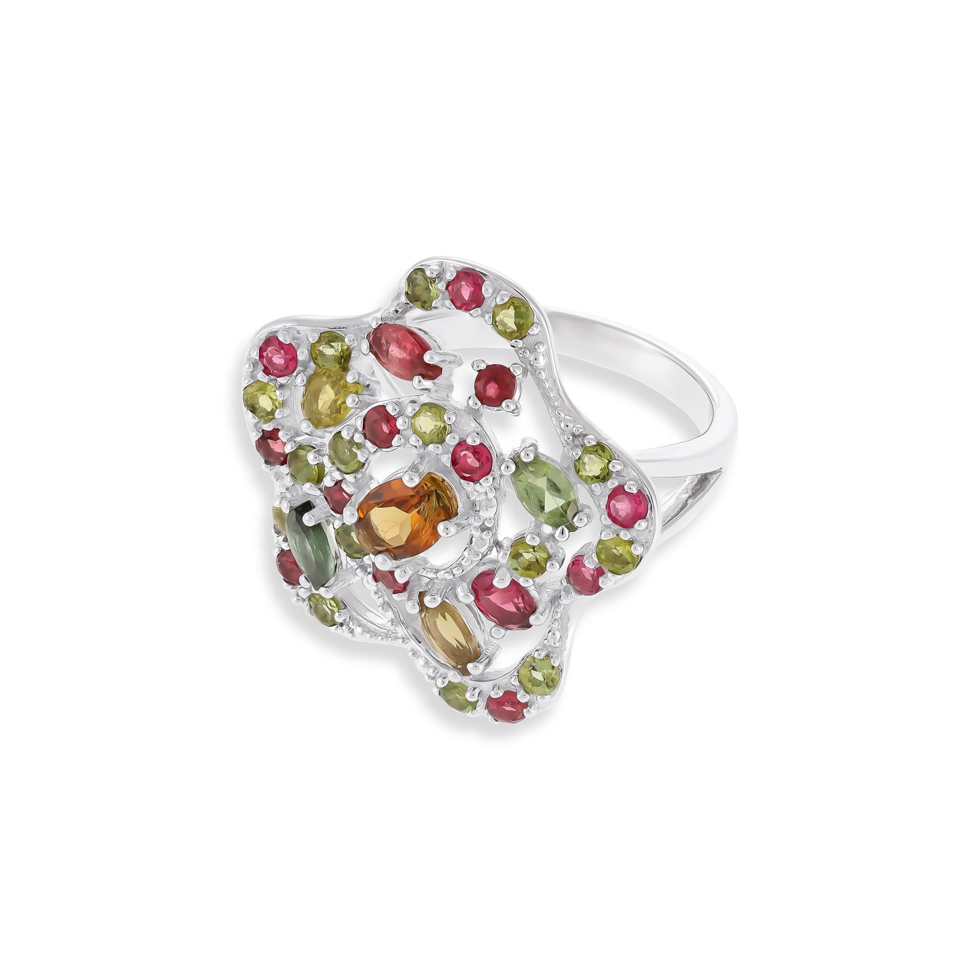Our 925 Silver Rhodium Plated Multi-tourmaline Flower Ring is all about adding a splash of fun to your look.