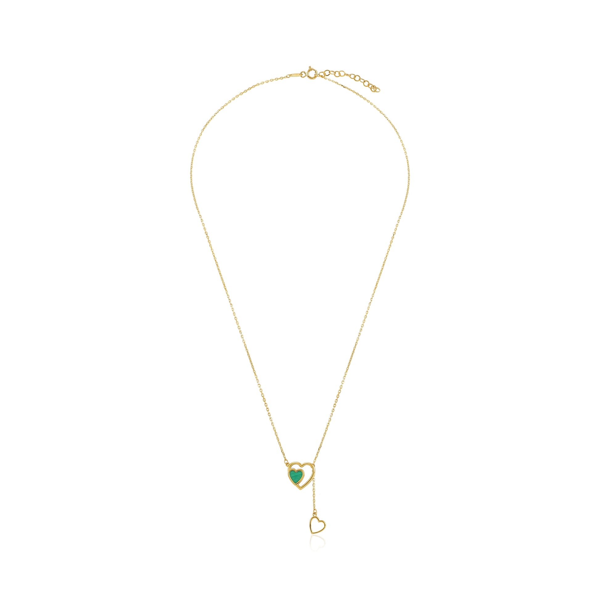 9ct Yellow Gold Duble Heart Green Stone Pendant Necklace