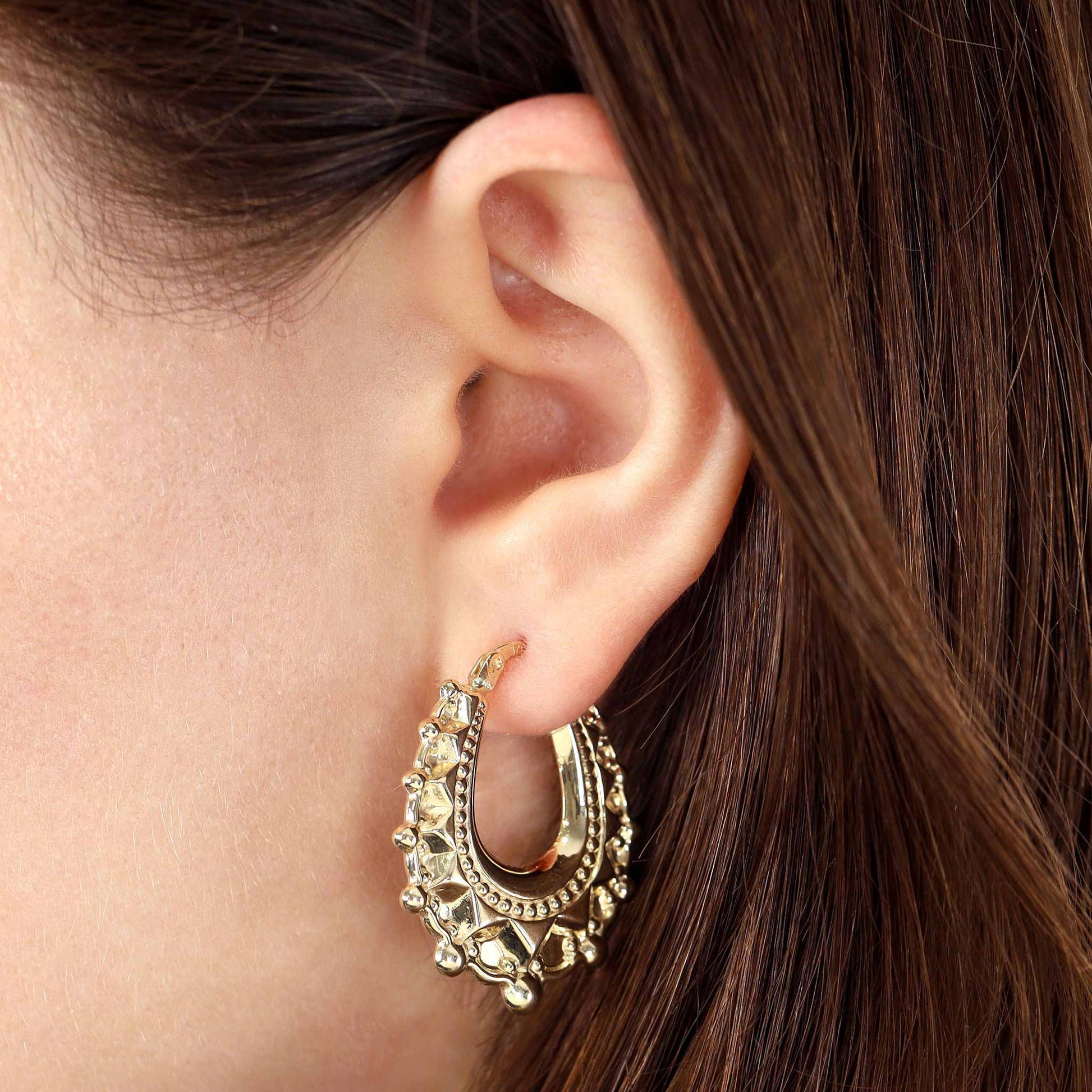9ct Yellow Gold Oval Creole Hoop Earrings