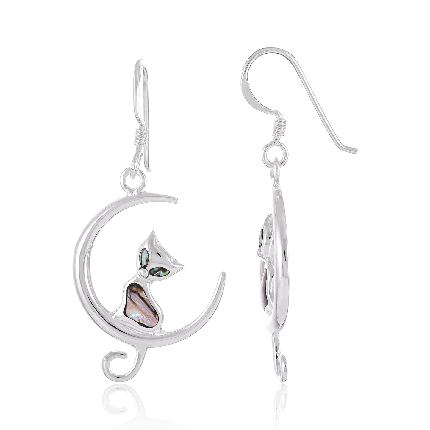 Crafted with 925 silver and featuring lovely abalone shells, these cat-shaped earrings sparkle with charm.