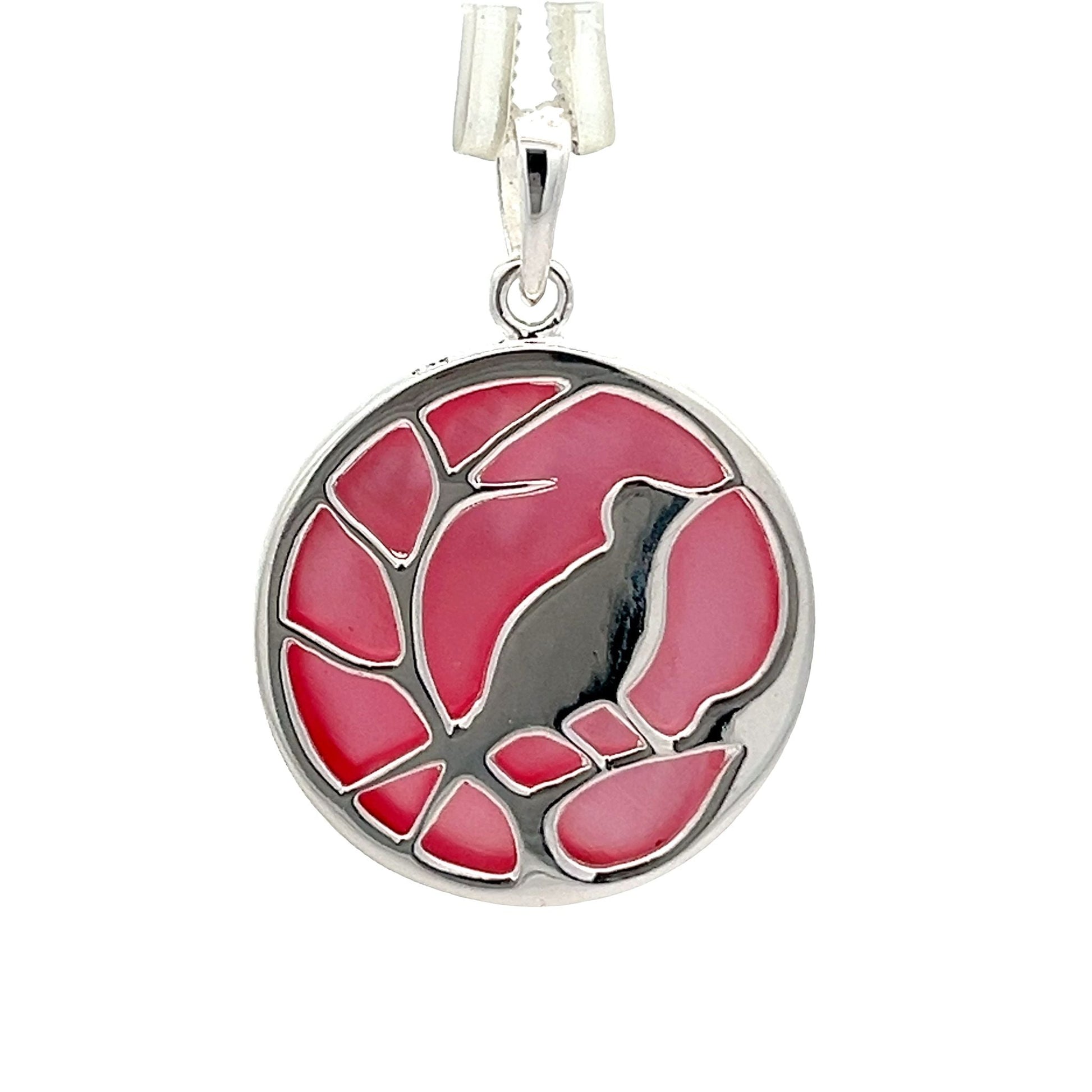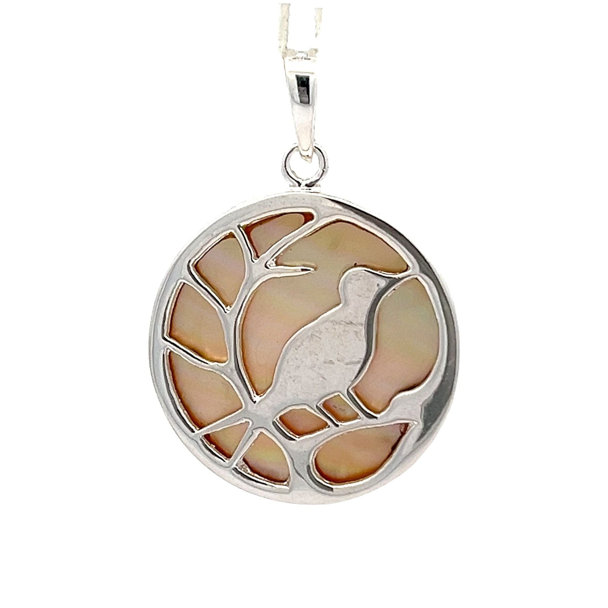 Sterling Silver Pearl Shell Bird Pendant dazzles with its gorgeous Pink Mother of Pearl shell, nestled in 925 silver.